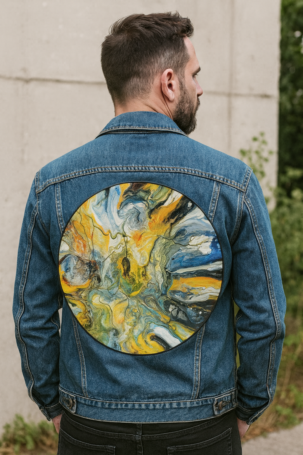 Unikatowy ekran / naszywka o wymiarach do 50 × 50 cm z nadrukiem wykonanym na podstawie moich własnych, ręcznie malowanych obrazów. Każdy egzemplarz przedstawia autorską sztukę przeniesioną na trwały, wysokiej jakości materiał.