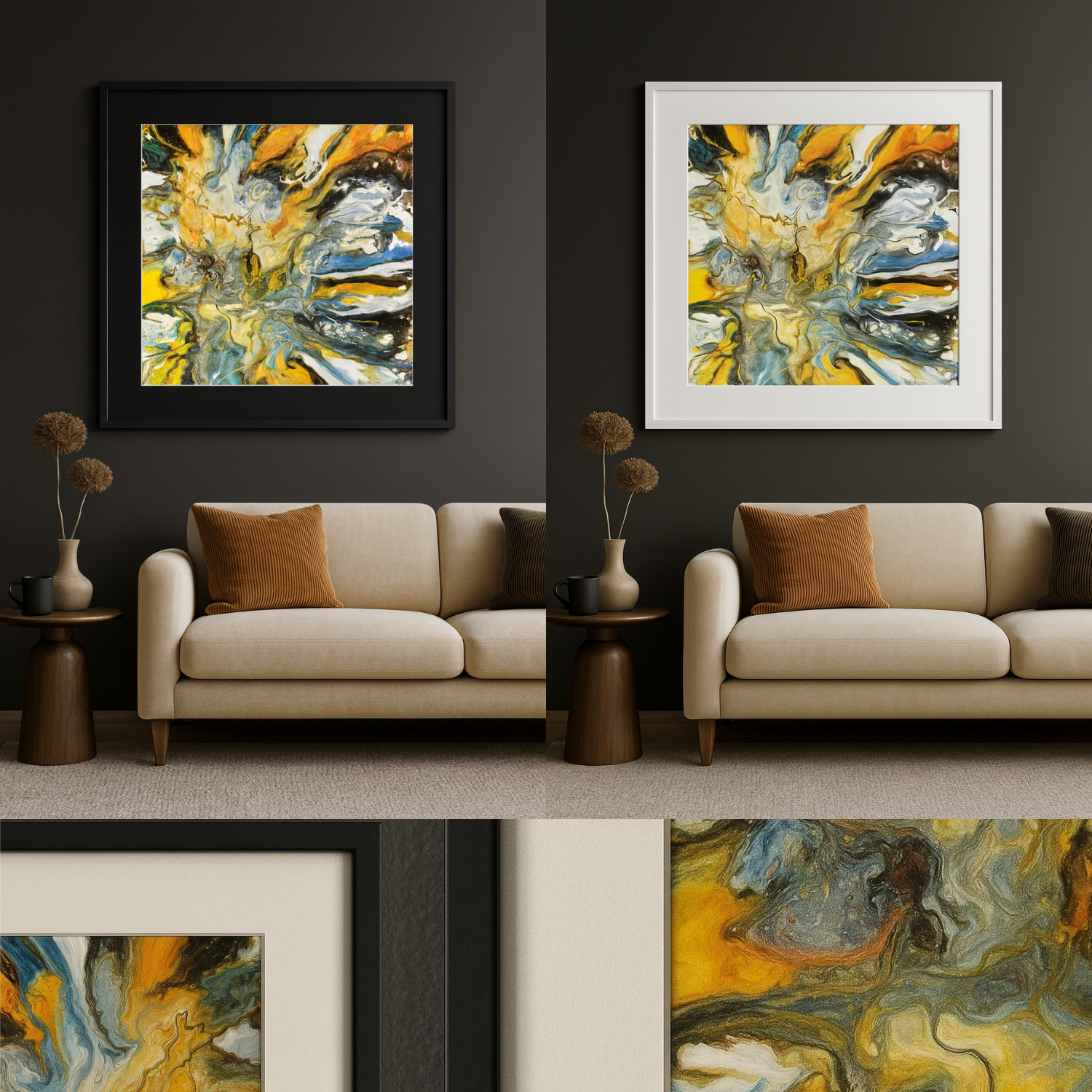 Wydruk na płótnie w ramie i pass partout. (Dostępne kolory: biały/czarny)