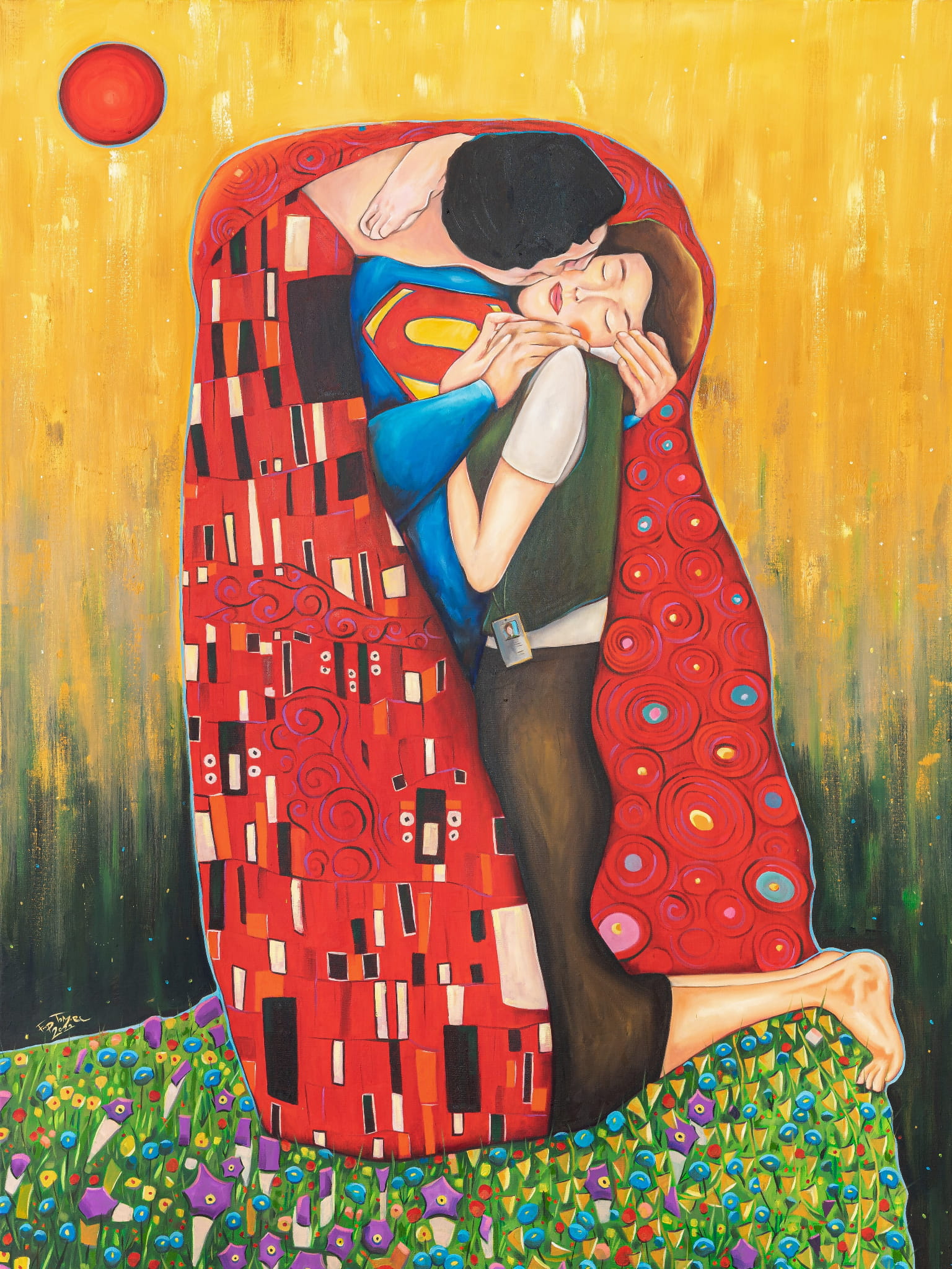 "Pocałunek" 40x50cm - Wydruk na płótnie w ramie i passe partout