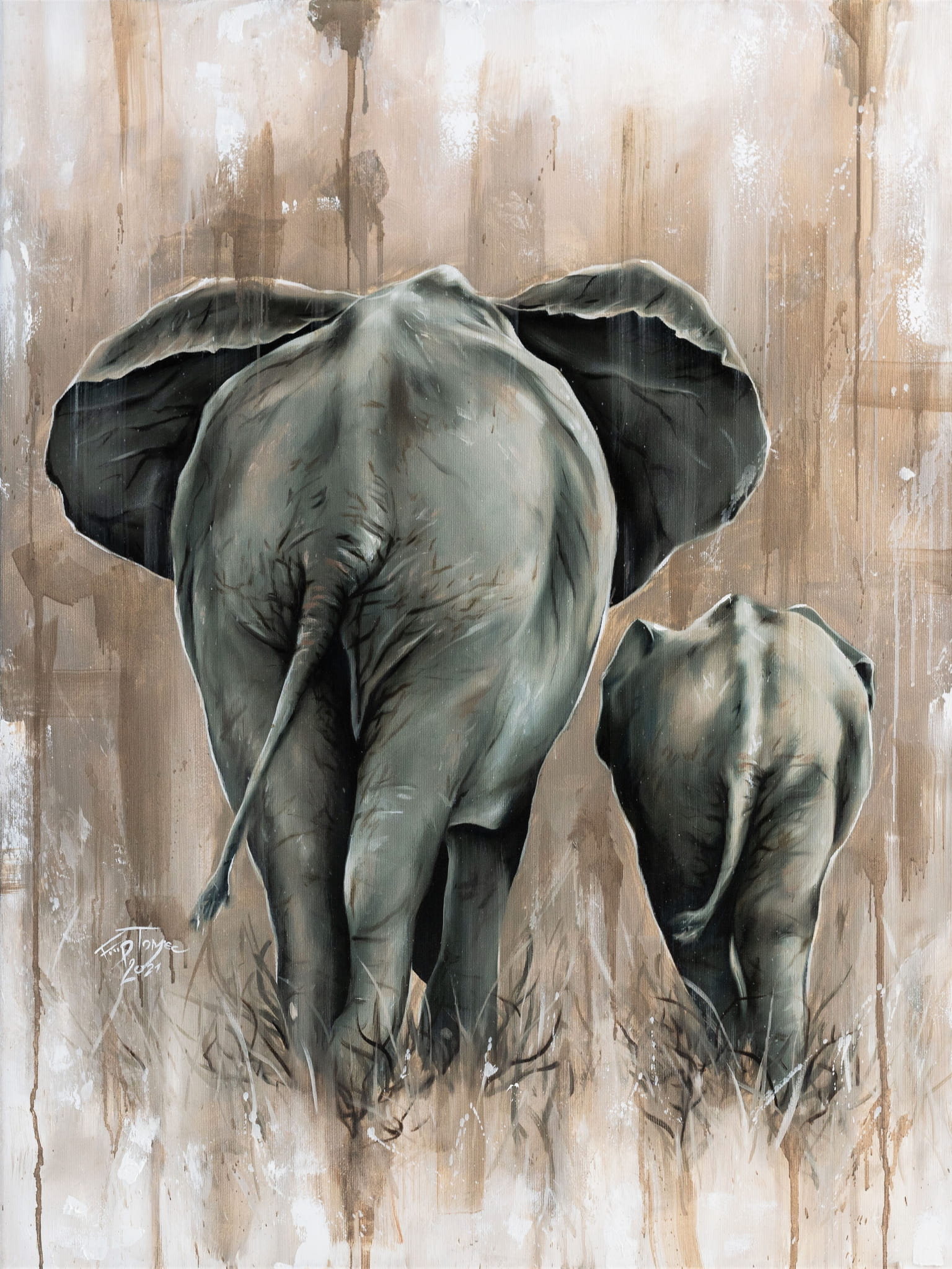 "Słonie" 40x50cm - Wydruk na płótnie w ramie i passe partout