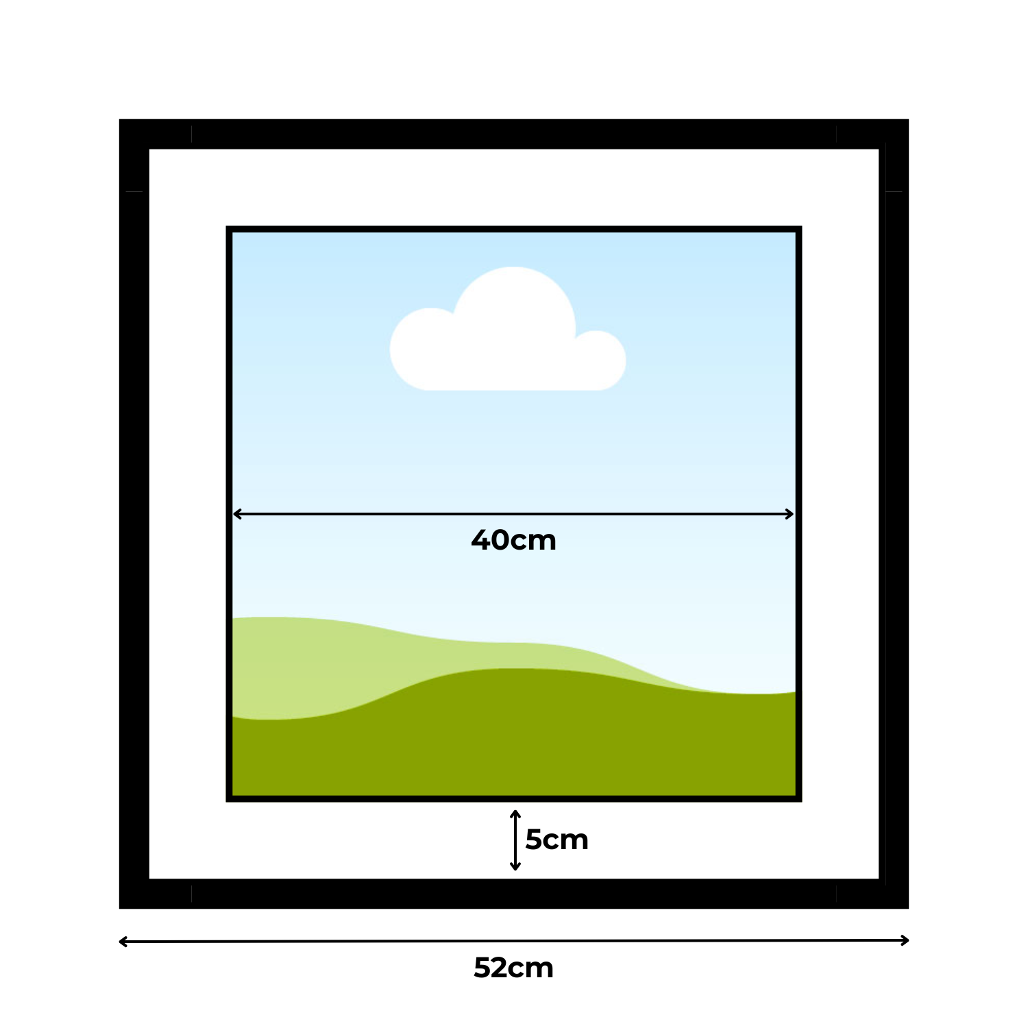 Opis techniczny: Obraz wydrukowany jest na certyfikowanym płótnie bawełnianym atramentem lateksowym zapewniającym doskonałą jakość kolorów, ostrość obrazu i zabezpieczającym przed promieniowaniem UV. Atrament jest pozbawiony rozpuszczalników dlatego może być używany przez alergików oraz w pokojach dziecięcych. Format grafiki to 40x40cm, a obrazu wraz z ramą około 50x50cm. Wokół wydruku znajduję się zapas białego płótna do montażu w ramie. Reprodukcja oprawiona jest w nowoczesną lecz minimalistyczną ramę o głębokości 1-2cm. Wysokiej jakości wydruk zabezpieczony jest od przodu 1-2mm szybą akrylową dodającą eleganckiego połysku i szyku. Na odwrocie znajduję się uchwyt do zawieszenia obrazu na ścianie. Tył obrazu stanowi płyta HDF wzmacniająca całą konstrukcję. Z tyłu obrazu znajdują się też gumowe odbijacze by zabezpieczyć Twoją ścianę przed porysowaniem. Wewnątrz znajduje się czarne passe partout ozdabiające obraz i podkreślające kontrast kolorów. Jest to matowa, sztywna tektura, która jest ukośnie frezowana tworząc głębie obrazu. Passe partout ma 5 cm szerokości z każdej strony dlatego format całego obrazu jest pomniejszony o ten wymiar. Całość otacza drewniana rama pokryta warstwą odpornego na zarysowania lakieru.